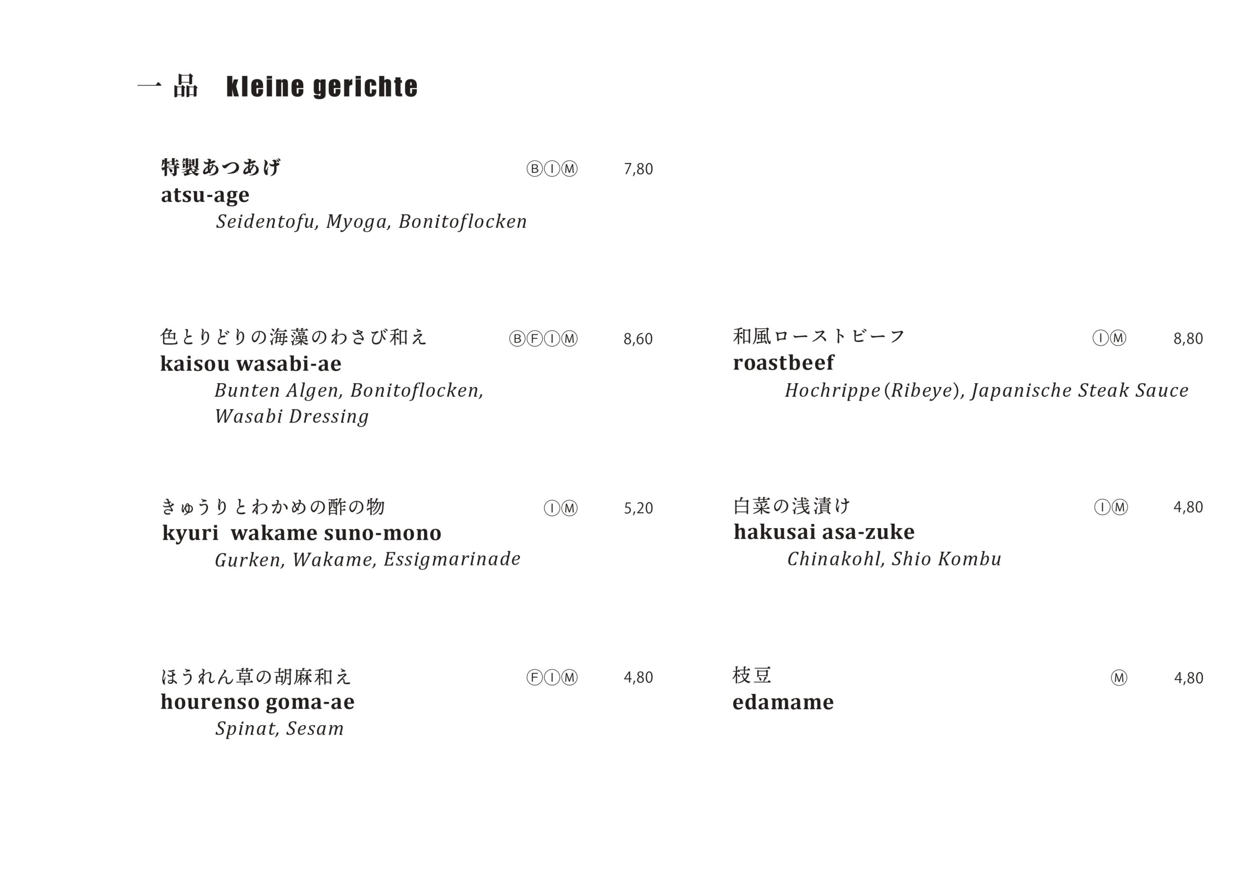 SPEISEKARTE AM ABEND