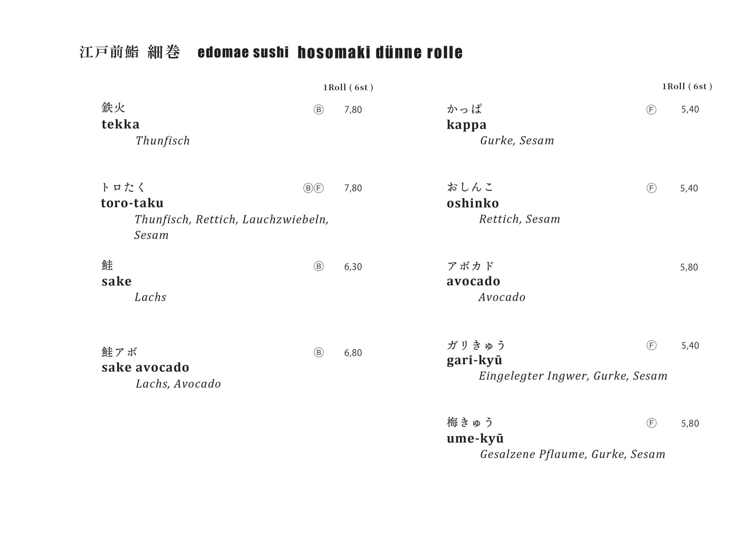 Edomae Sushi Hosomaki dünne Roll